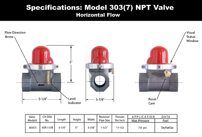 California Valves do not use any source of internal or external electrical power. They are designed to remain closed until manually reset. The valves are intended to be mounted in the gas line upstream or downstream of the gas-line pressure regulator and gas meter outside the structure. These valves do not replace the manual upstream shut-off valves provided in the gas service line.