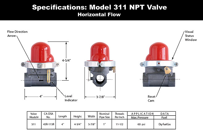 California Valves are earthquake sensitive gas shut-off valves. They are intended to close in the event of an earthquake to prevent gas flow into a structure where earthquake damage may have occurred. The valve reduces the potential for fire or explosion due to the release of natural gas into a structure where gas lines, gas fixtures, or gas appliances. California Valves do not use any source of internal or external electrical power. They are designed to remain closed until manually reset. The valves are intended to be mounted in the gas line upstream or downstream of the gas-line pressure regulator and gas meter outside the structure. These valves do not replace the manual upstream shut-off valves provided in the gas service line. |