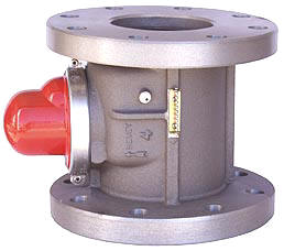 The valve consists of a swing check valve arrangement with an acceleration-sensitive triggering mechanism. The trip mechanism consists of a steel ball resting on a tapered cup-shaped support. The horizontal motion of an earthquake causes the ball to move from the center of the support. This allows the balls mass to act upon the movable pipe of the trip mechanism, activating the valve and initiating closure. Springs assist the valve- flapper to close and gas pressure assists in holding the valve disc in the closed position. The trip mechanism is factory set and sealed. A sight glass is provided so that the Open or Closed indicator can be seen, and the trip mechanism status of the valve can be easily determined.