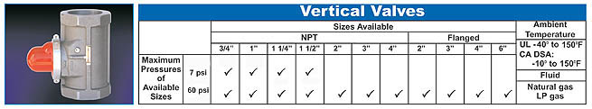 California Valves do not use any source of internal or external electrical power. They are designed to remain closed until manually reset. The valves are intended to be mounted in the gas line upstream or downstream of the gas-line pressure regulator and gas meter outside the structure. These valves do not replace the manual upstream shut-off valves provided in the gas service line.