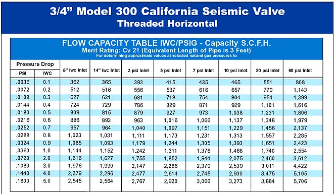 California Valves are earthquake sensitive gas shut-off valves. They are intended to close in the event of an earthquake to prevent gas flow into a structure where earthquake damage may have occurred. The valve reduces the potential for fire or explosion due to the release of natural gas into a structure where gas lines, gas fixtures, or gas appliances. California Valves do not use any source of internal or external electrical power. They are designed to remain closed until manually reset. The valves are intended to be mounted in the gas line upstream or downstream of the gas-line pressure regulator and gas meter outside the structure. These valves do not replace the manual upstream shut-off valves provided in the gas service line. |