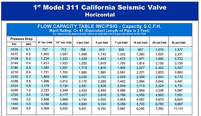 California Valves are earthquake sensitive gas shut-off valves. They are intended to close in the event of an earthquake to prevent gas flow into a structure where earthquake damage may have occurred. The valve reduces the potential for fire or explosion due to the release of natural gas into a structure where gas lines, gas fixtures, or gas appliances. California Valves do not use any source of internal or external electrical power. They are designed to remain closed until manually reset. The valves are intended to be mounted in the gas line upstream or downstream of the gas-line pressure regulator and gas meter outside the structure. These valves do not replace the manual upstream shut-off valves provided in the gas service line. |