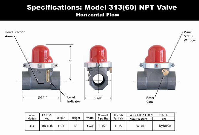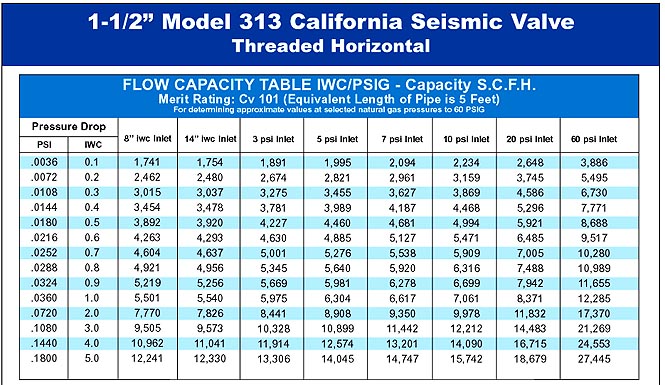 California Valves are earthquake sensitive gas shut-off valves. They are intended to close in the event of an earthquake to prevent gas flow into a structure where earthquake damage may have occurred. The valve reduces the potential for fire or explosion due to the release of natural gas into a structure where gas lines, gas fixtures, or gas appliances.