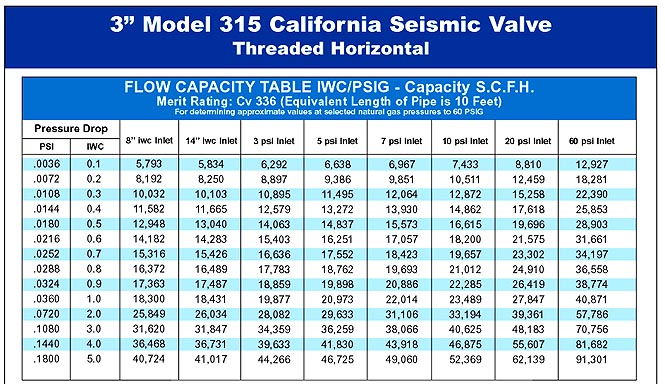California Valves are earthquake sensitive gas shut-off valves. They are intended to close in the event of an earthquake to prevent gas flow into a structure where earthquake damage may have occurred. The valve reduces the potential for fire or explosion due to the release of natural gas into a structure where gas lines, gas fixtures, or gas appliances. California Valves do not use any source of internal or external electrical power. They are designed to remain closed until manually reset. The valves are intended to be mounted in the gas line upstream or downstream of the gas-line pressure regulator and gas meter outside the structure. These valves do not replace the manual upstream shut-off valves provided in the gas service line. |