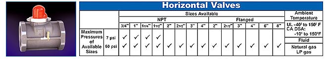 California Valves do not use any source of internal or external electrical power. They are designed to remain closed until manually reset. The valves are intended to be mounted in the gas line upstream or downstream of the gas-line pressure regulator and gas meter outside the structure. These valves do not replace the manual upstream shut-off valves provided in the gas service line.