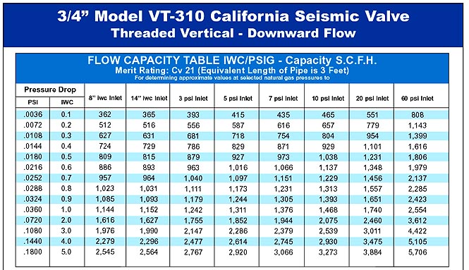 California Valves are earthquake sensitive gas shut-off valves. They are intended to close in the event of an earthquake to prevent gas flow into a structure where earthquake damage may have occurred. The valve reduces the potential for fire or explosion due to the release of natural gas into a structure where gas lines, gas fixtures, or gas appliances.