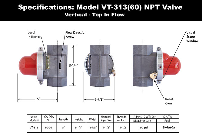 California Valves are earthquake sensitive gas shut-off valves. They are intended to close in the event of an earthquake to prevent gas flow into a structure where earthquake damage may have occurred. The valve reduces the potential for fire or explosion due to the release of natural gas into a structure where gas lines, gas fixtures, or gas appliances. California Valves