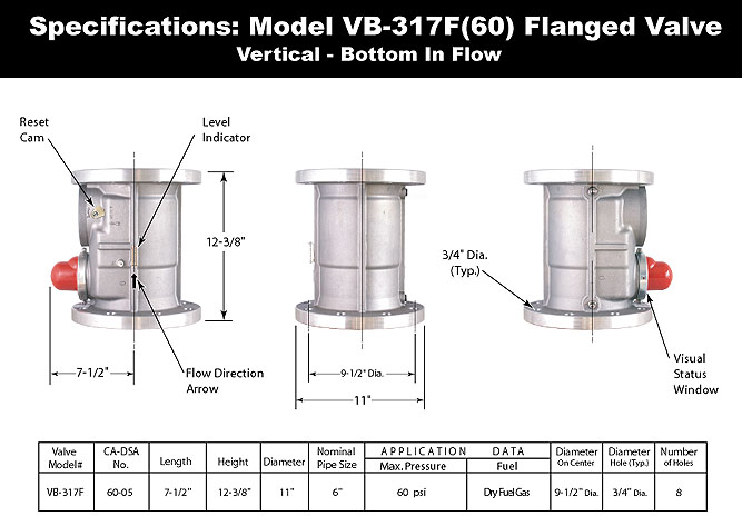 The valve consists of a swing check valve arrangement with an acceleration-sensitive triggering mechanism. The trip mechanism consists of a steel ball resting on a tapered cup-shaped support. The horizontal motion of an earthquake causes the ball to move from the center of the support. This allows the balls mass to act upon the movable pipe of the trip mechanism, activating the valve and initiating closure. Springs assist the valve- flapper to close and gas pressure assists in holding the valve disc in the closed position. The trip mechanism is factory set and sealed. A sight glass is provided so that the Open or Closed indicator can be seen, and the trip mechanism status of the valve can be easily determined.