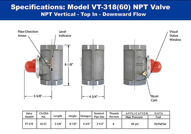 California Valves do not use any source of internal or external electrical power. They are designed to remain closed until manually reset. The valves are intended to be mounted in the gas line upstream or downstream of the gas-line pressure regulator and gas meter outside the structure. These valves do not replace the manual upstream shut-off valves provided in the gas service line.